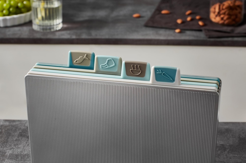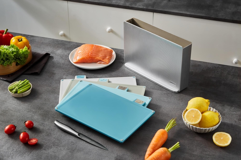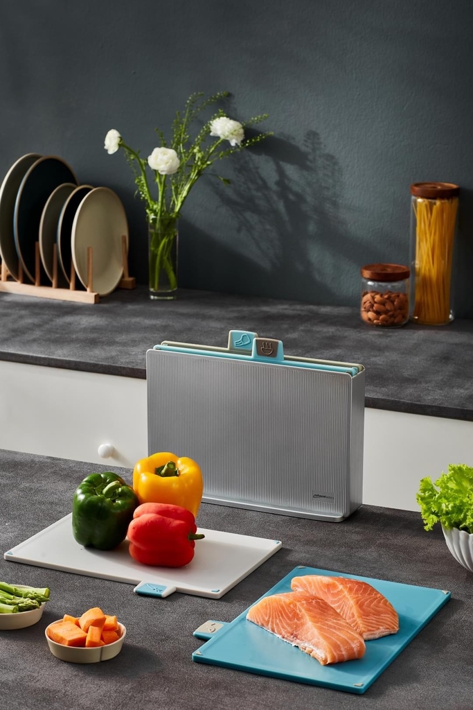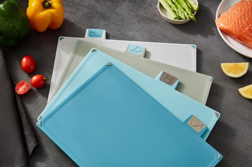 🔪Sản phẩm gồm 4 thớt sử dung cho 4 nhóm thực phẩm khác nhau có tag phân biệt và 1 hộp đựng.