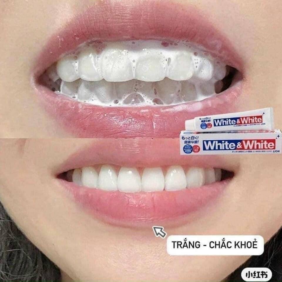 Kem đánh răng white&white Lion Nhật Bản là kem đánh răng siêu trắng, có tác dụng làm sạch răng, phòng ngừa sâu răng, giảm viêm nướu, giảm sự hình thành vôi răng, vết ô vàng,… trong quá trình ăn uống hàng ngày, giữ cho hơi thở thơm mát dài lâu.