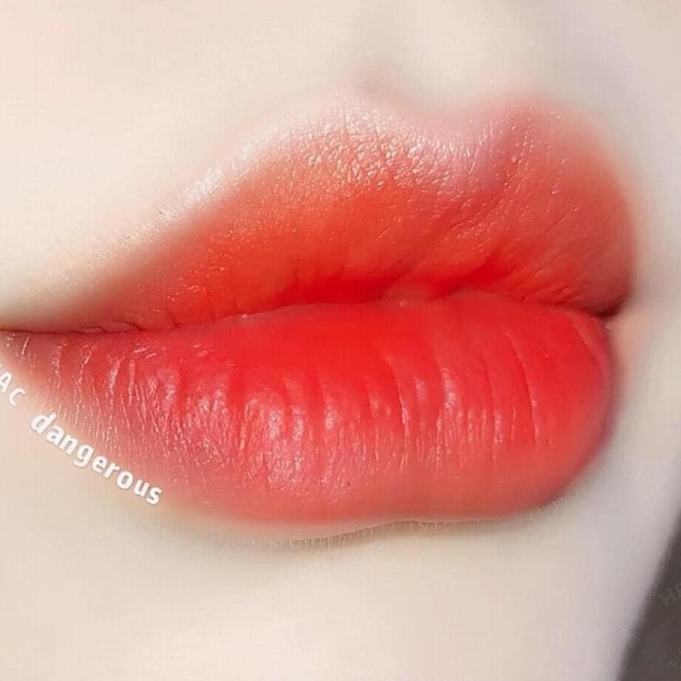 MAC Dangerous tone đỏ cam thiên về sắc son đỏ hơn một chút nên cực kì tôn da và phù hợp với mọi phong cách thời trang của Chị em.